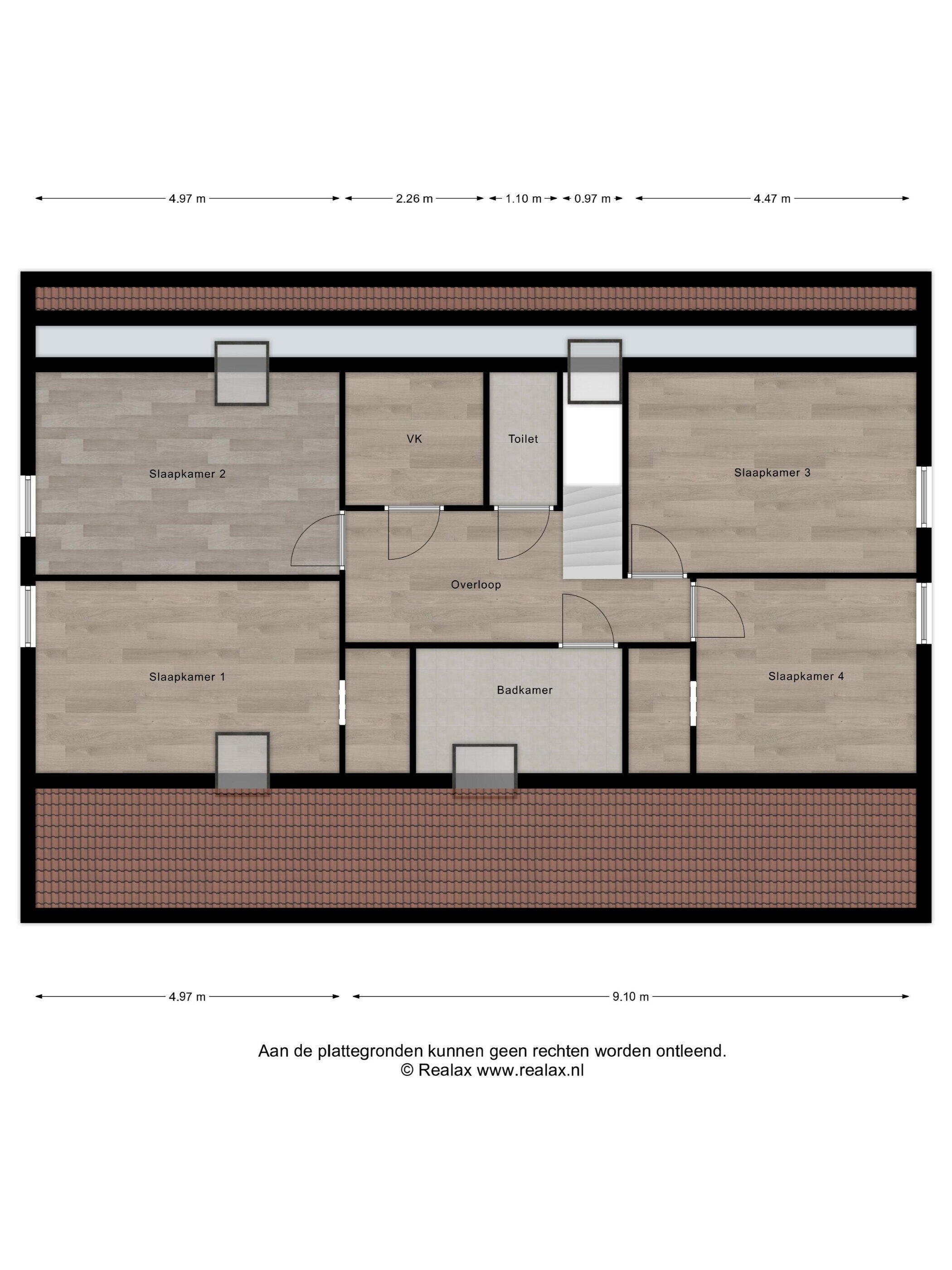 Vliering over de hele lengte van de woning, via een vlizotrap bereikbaar.
